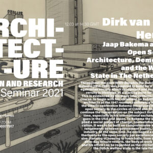 The Architecture Departments of Lusófona University of Lisbon and Porto are organizing a seminar – Architecture: Design and Research – for the current academic year. In this context will happen on 12th March at 14:30 (GMT) the PhD Seminar Dirk van den Heuvel – Jaap Bakema and the Open Society: Architecture, Democracy and the Welfare State in The Netherlands. Throughout the post-WWII decades the Dutch architect Jaap Bakema (1914-1981) was inspired to build for a democratic and egalitarian society which recognized and accommodated diversity in lifestyles as a starting point for urban planning. This is evidenced by his many interventions…