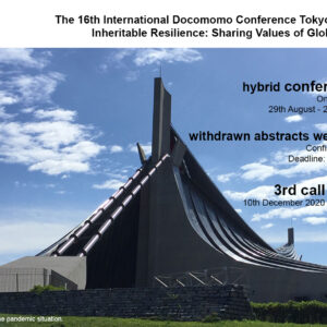 Due the COVID-19 pandemic, DOCOMOMO International and the Japan conference board of the DOCOMOMO2020+1 decided to set up the 16th International Docomomo Conference Tokyo Japan 2020+1, 29th August – 2nd September 2021, with an hybrid format, through a mixed system between online and face-to-face (if possible, depending on the pandemic situation) lectures. Considering the new format available, 30 applicants with accepted abstracts who gave up their participation are welcomed to be back. If these candidates wish to participate under these new conditions, they should confirm and register till 7th December 2020. Turning the Conference into online, we are glad to announce and launch a 3rd call for papers between 10th December 2020 and 31st January…