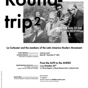 Docomomo International is pleased to announce the fourth meeting of the lecture series “ROUNDTRIP II: From the Alps to the Andes and vice-versa. Le Corbusier and the members of the Latin American Modern Movement”, organized by Ex-Momo. The next lecture, “From the ALPS to the ANDES”, will be held online on 22nd October 2021 at 6.00 pm (GMT+2). On this meeting will speak: Paolo Mellano (Politecnico di Torino) and Annalisa Dameri (Politecnico di Torino) “Vicente Nasi, fra eclettismo e modernità” Ingrid Quintana Guerrero (Uniandes) “Una ‘datilera’ suramericana: Augusto Tobito en el taller de Le Corbusier” David Vélez (Universidad Pontificia Bolivariana)…