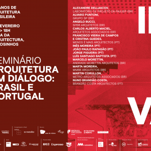 Starting from the themes proposed in the Exhibition “Infinito Vão – 90 years of Brazilian Architecture” [Infinito Vão – 90 Anos de Arquitetura Brasileira], the seminar “Architecture in Dialogue: Portugal and Brazil” [Arquitetura em Diálogo: Portugal e Brasil] invited 14 architects from the two countries to talk about the distinctive traits of both the new architectonical productions. The seminar will focus on program, technology, infrastructures and cultural heritage, will make a budget of the actual architectonical sphere in these countries. For more details, please visit: website [Portuguese]