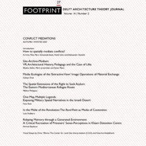 Docomomo International is pleased to share that the new issue of Footprint is out now – Vol. 14, Issue 27, Autumn / Winter 2020.This issue, edited by Aleksandar Staničić, Marc Schoonderbeek, Heidi Sohn and Armina Pilav, is dedicated to the theme “Conflict Mediations”. This issue includes research articles by Eliyahu Keller, Mark Jarzombek and Eytan Mann; Gökçe Önal; Melina Philippou; Noa Roei; Lutz Robbers; and Ahmad Beydoun. It also includes visual essays by Omar Mismar; The Center for Land Use Interpretation (CLUI); and Katarina Andjelković. Footprint 27 can be found online in the following link: https://journals.open.tudelft.nl/footprint/issue/view/845.