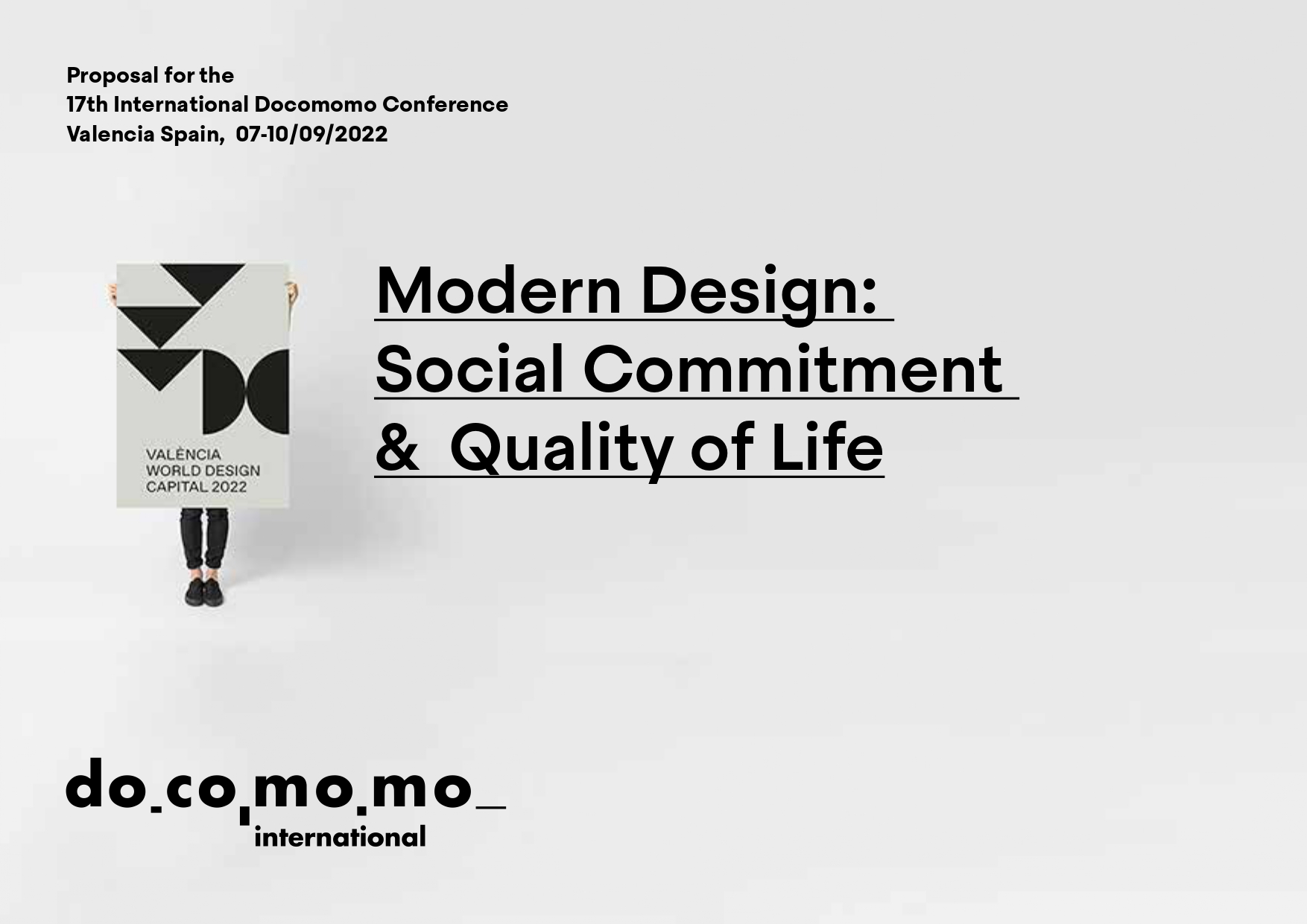 The 17th International Docomomo Conference will take place in Valencia, Spain, between the 6th and the 9th September, 2022, under the theme “Modern Design: Social Commitment & Quality of Life”.