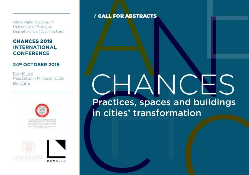 CHANCES is an international conference that aims to explore, from a multidisciplinary perspective, the fragile but continuous urban transformation through the effective contribution of culture, nature and technology. The aim of this conference is to provide a deeper understanding of urban transformations’ research and practices, focusing on the use, re-use, design, renovation and innovative governance and management of public spaces, urban commons and buildings. Contributions can build on reflections and studies concerning current or historical approaches that are changing or drastically changed the cities we lived in.