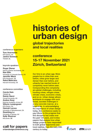 “From 15-17 November 2021, the ETH Zürich Department of Architecture will host the conference ‘Histories of Urban Design: Global Trajectories and Local Realities’. This conference is organised jointly with the TUDelft Department of Architecture.