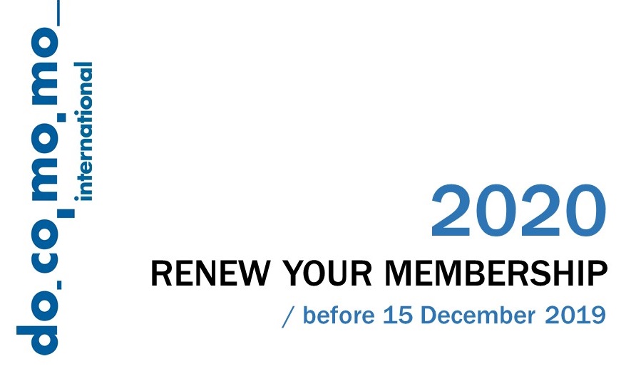 Docomomo International would like to remember you to renew your membership for the year 2020, before 15 December, in order to assure that you receive the 2020 Docomomo Member Card in time to benefit from the membership advantages the whole year! Contact your national or regional chapter.