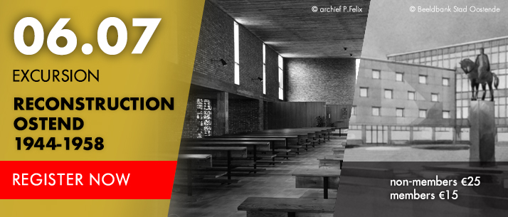 Saturday, July 06 at 13:45 Docomomo Belgium organizes a guided tour of the Convent Clarissenklooster (Paul Felix, 1957-1965) by architect Marc Felix and Zsuzsanna Böröcz; and, at 16:30, a visit with the curator Marc Dubois to the exhibition “Destruction and reconstruction. Ostend 1944-1958”.