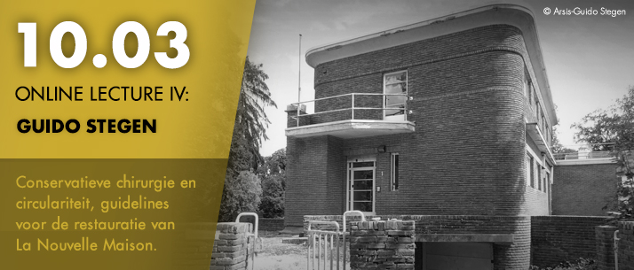 Docomomo Belgium invites to the Online Lecture IV, via ZOOM, on Wednesday 10th March 2021 at 8 pm. The conference will be held by Guido Stegen with the title “Conservatieve chirurgie en circulariteit, guidelines voor de restauratie van La Nouvelle Maison” [Conservative surgery and circularity, guidelines for the restoration of La Nouvelle Maison].