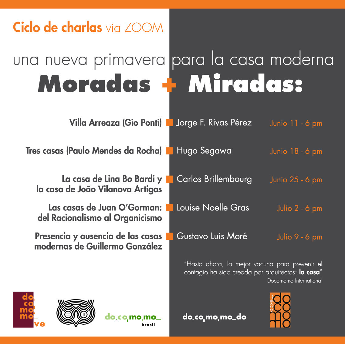 Online lectures series “Moradas + Miradas: una nueva primavera para la casa moderna” [“Addresses + Views: a new spring for the modern house”]