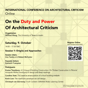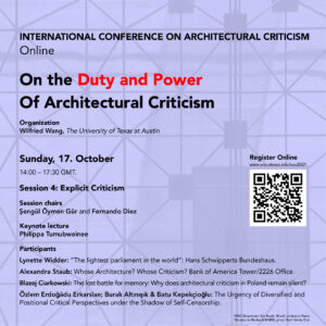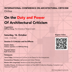 Under the theme “On the Duty and Power of Architectural Criticism” this conferences addresses questions as: