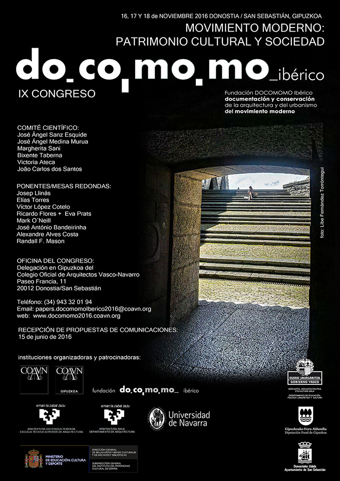 The IX docomomo Ibérico Congress, organized by Fundación docomomo Ibérico, in collaboration with Colegio Oficial de Arquitectos Vasco-Navarro, Delegación en Guipúzcoa del COAVN, Escuela Técnica Superior de Arquitectura – UPV-EHU, Escuela Técnica Superior de Arquitectura de la Universidad de Navarra and Instituto de Patrimonio Cultural de España, was held last 16th-18th October.
