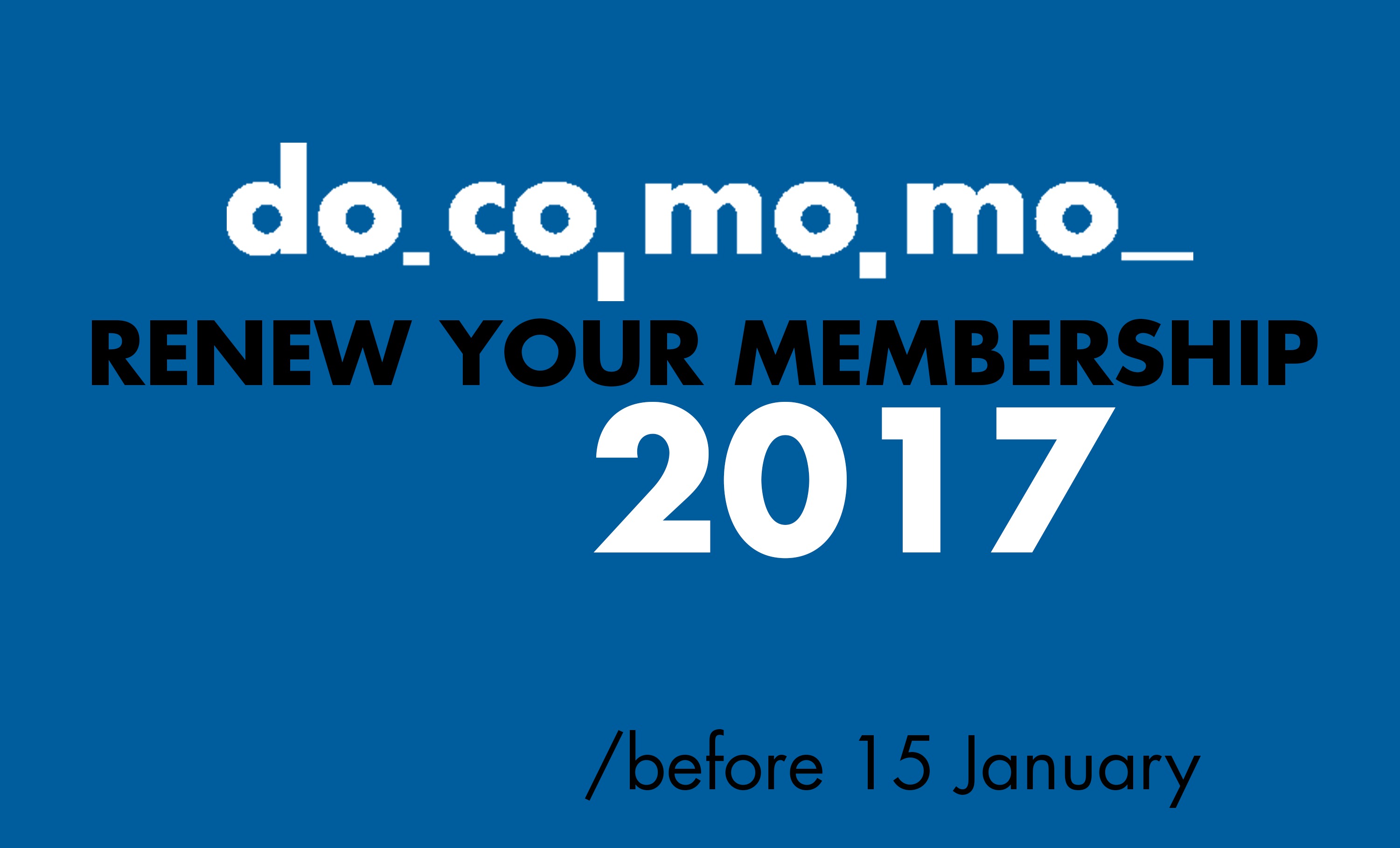 Docomomo International would like to remember you to renew your membership for the year 2017, before 15 January.