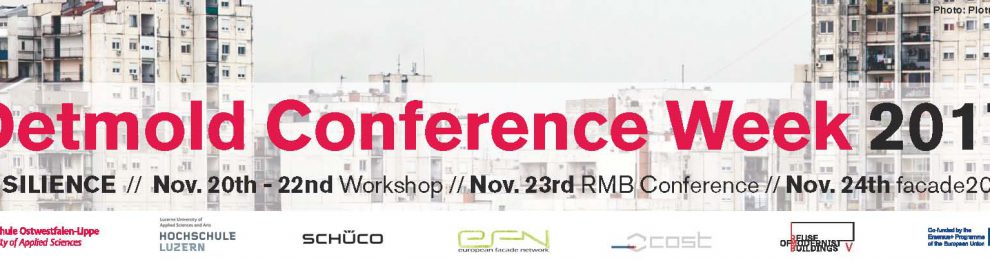 Within the framework of the Detmold Conference Week 2017, the consortium of the Erasmus+ project ‘RMB: Re-use of Modernist Buildings. Design Tools for Sustainable Transformations’ organized a RMB Conference/Session “Resilience in Modernist Buildings”, on Thursday, 23rd November 2017. Contributions put under discussion the theme of Resilience focused on the facades of modernist buildings from the 20th century.