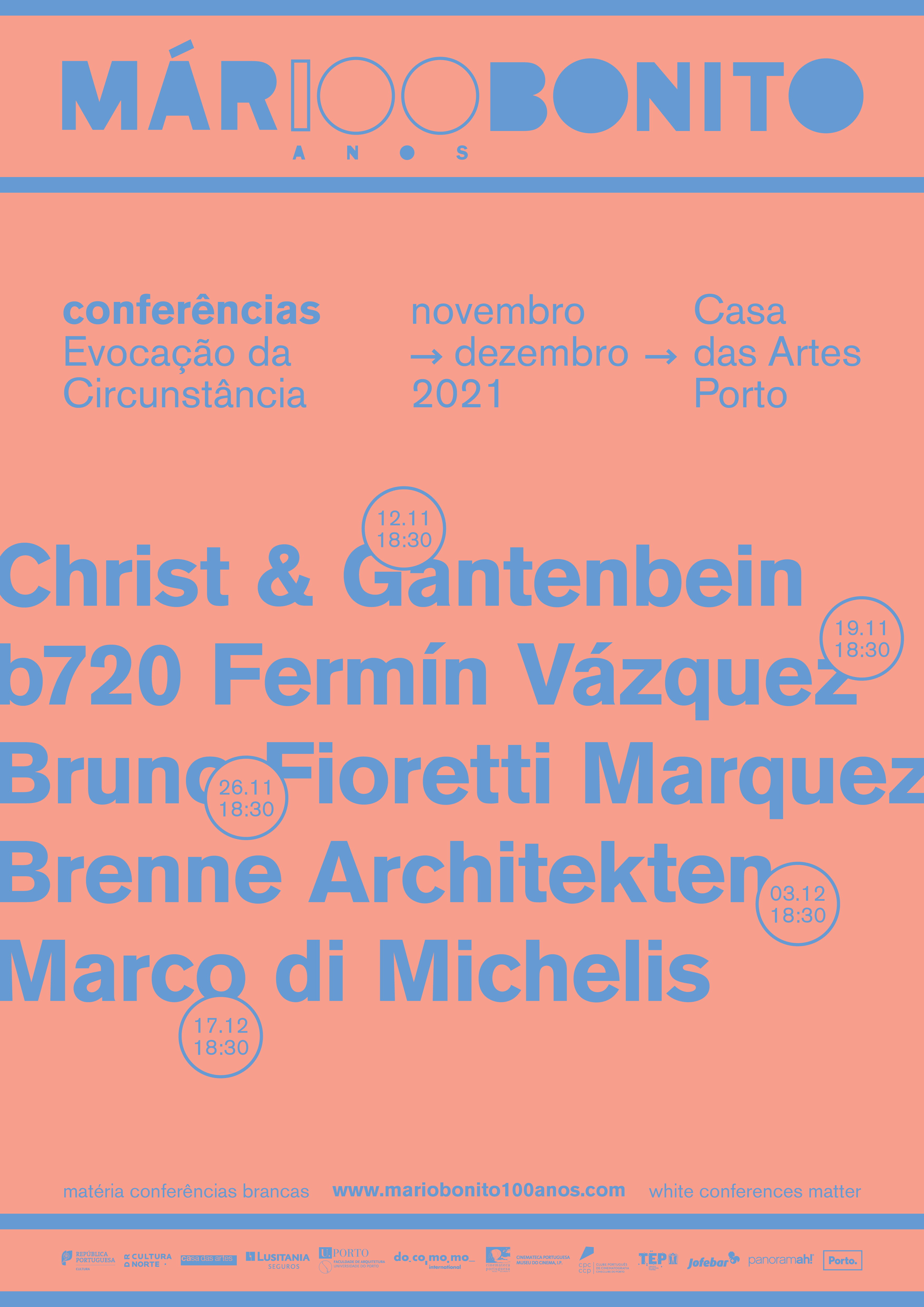 Matter. the white conferences evokes the 100th anniversary of the birth of Mário Bonito (1921-1976) – a modern architect from Porto author of works as the “O Lar Familiar” Neighborhood and the Ouro Industrial Company Building, with a strong connection to the cinema, a decisive role in the Portuguese Club of Cinematography, and an active participation in theater -, through a set of actions that discuss his lines of thought and body of work, which we aim to expand and develop through the pursuit of authorial readings on contemporary matters, beginning mid- September, extending up to the end of December 2021.