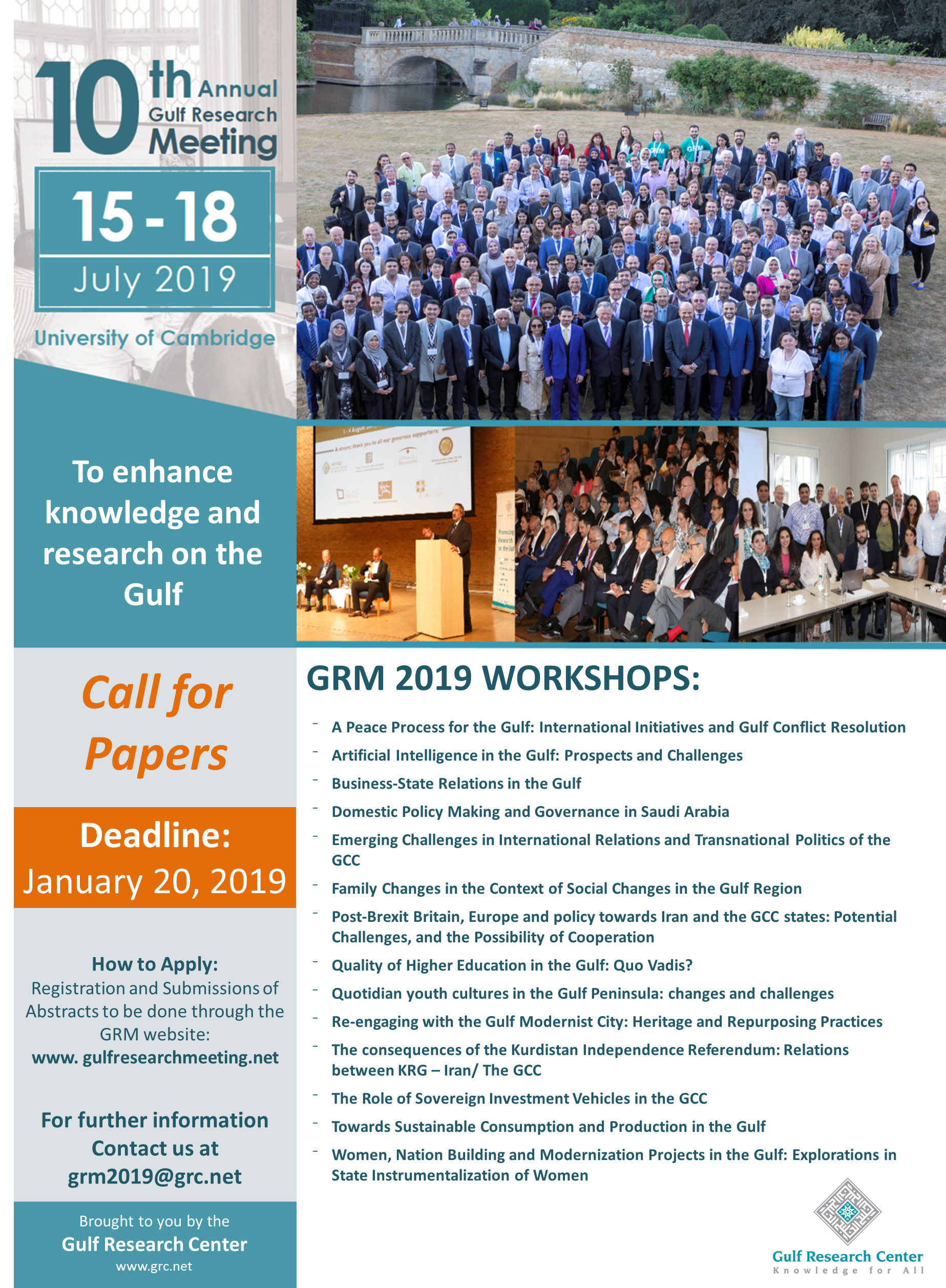 In the framework of the 10th Gulf Research Meeting in Cambridge, UK that will take place in July 2019 the workshop “Re-engaging with the Gulf Modernist City: Heritage and Repurposing Practice,” is now accepting proposals.