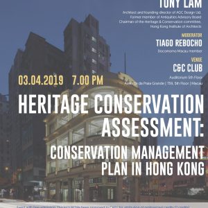 Docomomo Macau is organising a lecture on Heritage Conservation Assessment: Conservation Management Plan in Hong Kong, on the 3rd of April, 2019. The invited speaker is architect Tony Lam and the moderation of the lecture will be done by Tiago Rebocho. Admission is free and the conference will be held in English. Time: 19h00, 3rd of April, 2019 Venue: Auditorium, C & C Club, Macau The poster can be found here.