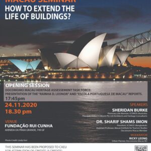 Docomomo Macau is inviting you to participate in the 5th Docomomo Macau Seminar: How to extend the Life of Buildings, with Sheridan Burke & Imon Sharif as our speakers, moderated by Ricky Leong. Opening Session starts at 17h45 on November 24 , presented by Docomomo Macau Heritage Assessement Task Force: Presentation of the Rainha D Leonor & Escola Portuguesa de Macau Assessement Reports. “A good building is much more than a functional materialization. It contains the trinity that durability and beauty add to use. So what choices does it face when its function is unplugged or its durability comes into…